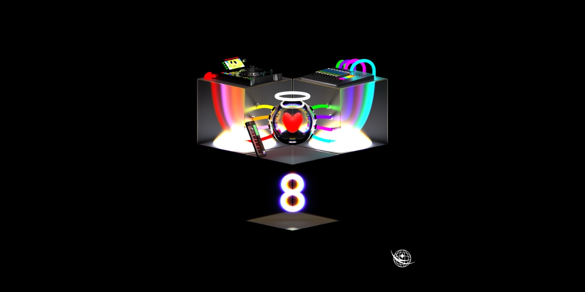I thought about the charity and also what the FORM community provides, and thought a heart was a perfect way to communicate all of those things. I decided to have the keyboard and the mixer connect directly to the heart, to communicate the idea that the work that the musicians were doing to complete this album was in fact fueling this sense of community.