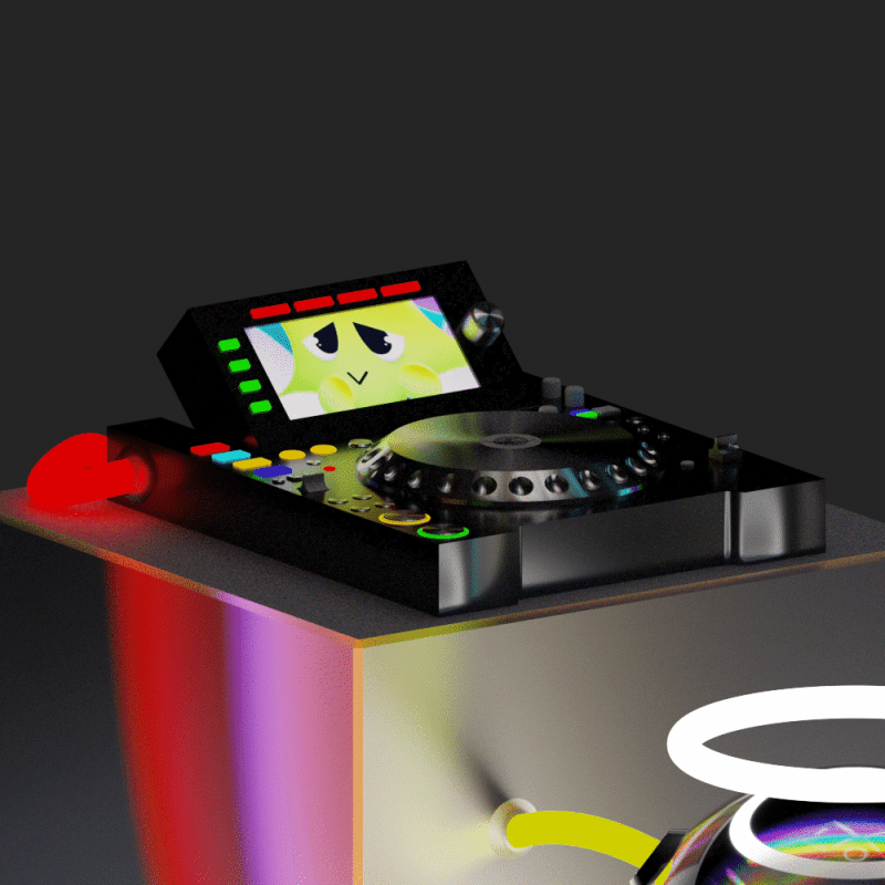 I thought about the musicians and their gear, and the Pioneer CDJ came to mind. I’ve always thought that it looked iconic, with it’s many buttons, screen and prominent turntable that is instantly recognizable. It also brings along the history of DJing from the 1990s to the present. It gives the viewer an idea of the kind of music they’d be listening to!
