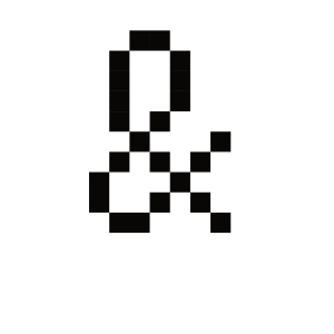 These were the most troublesome characters in the whole typeface for me. It took quite a bit of tweaking to make the two-story “a” look right while trying my best to conform to the 4 x 10 grid. I originally made a single-story “a”, but it seemed out of place for these kinds of pixel fonts. The ampersand also took a lot of work, especially with balancing the sizes of both counters and seeing how I could avoid pushing too far out of my grid constraint.